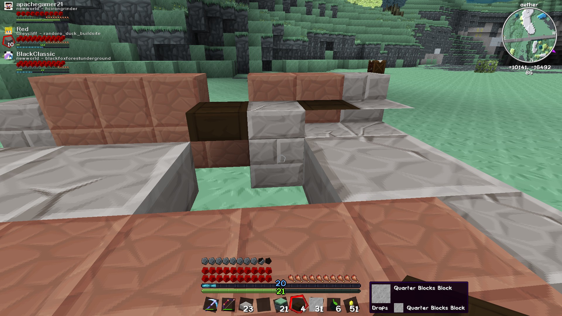 When I removed the regular block, the pattern reappeared. I can redo what I’m doing with quarter blocks that look like normal slabs, but unfortunately that means I need a lot more sand.